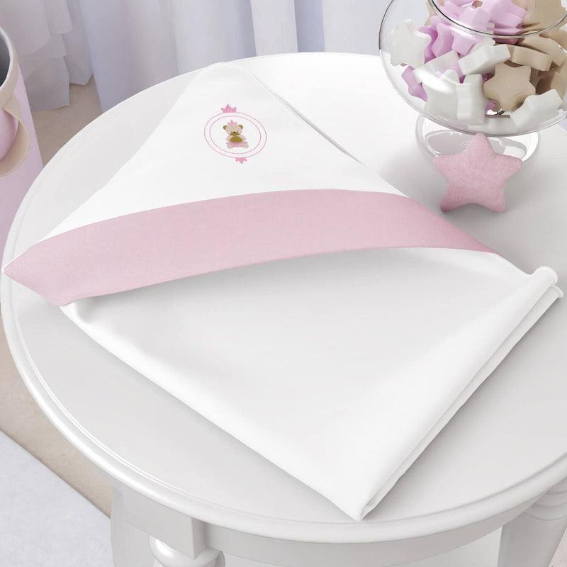 Protection with cosiness and sophistication, you will find in the Pink Royalty Teddy Bear Hooded Towel! Super soft, the 100% cotton fabric respects the newborn's delicate skin and will leave her dry and warm, always with great comfort. This exclusive model also comes with a hood, to snuggle, protect from the cold and cover your princess' little ears. Keeping the elegance, the piece stands out for the exclusive embroidery of teddy bear and its crowns.