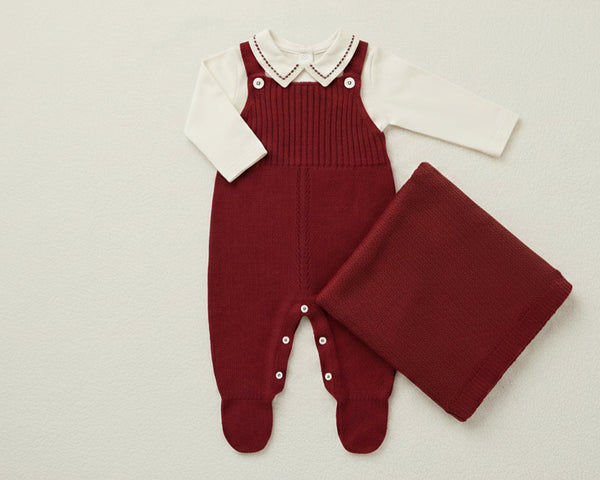 2 Piece Burgundy Knit Baby Newborn Coming Home Set – Footed Romper & Blanket (0–3 Months)